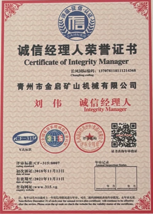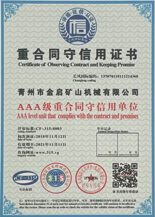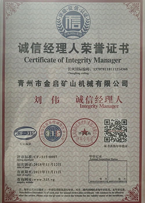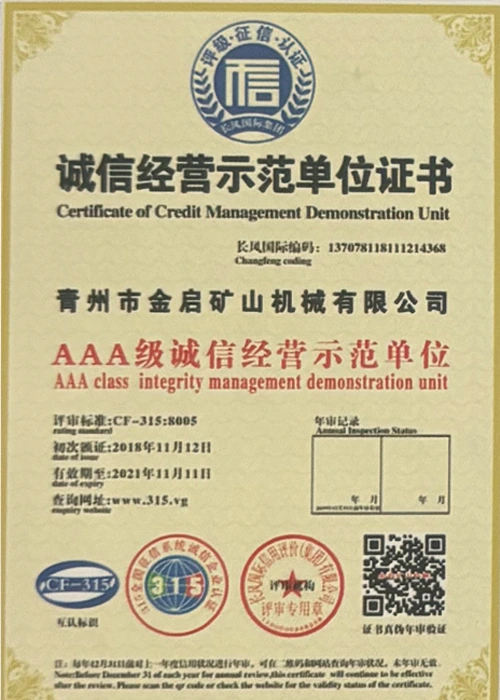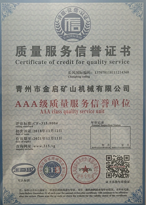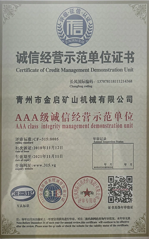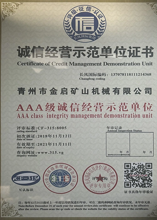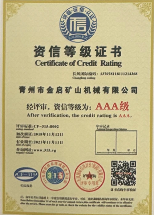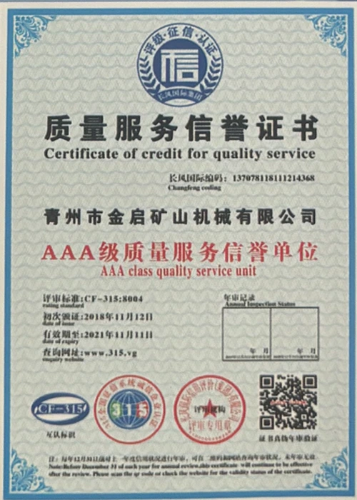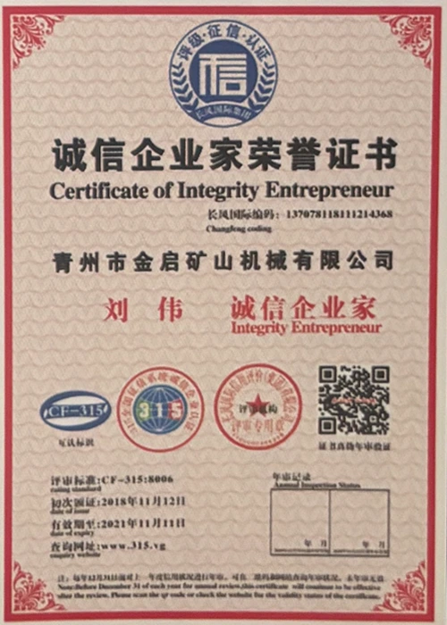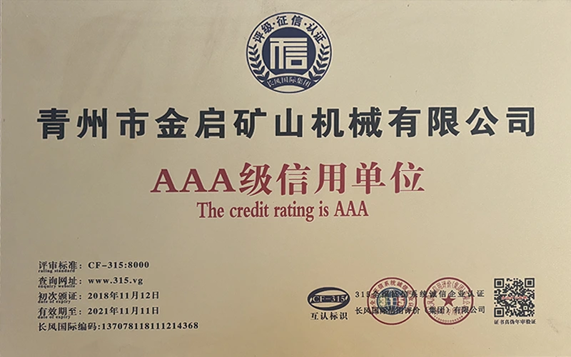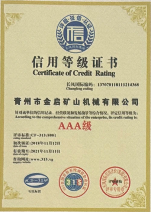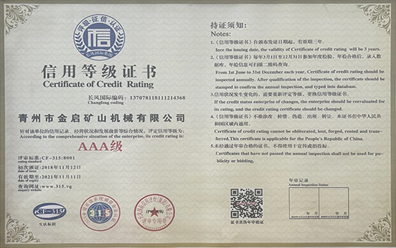 С дългогодишен задълбочен опит в индустрията, разчитайки на строг контрол на качеството и непрекъснати технологични иновации, компанията е получила редица авторитетни квалификации, сертификати и патентни сертификати, включително сертификат за система за управление на качеството ISO, сертификат за безопасност на минни продукти, както и множество патенти за изобретения и патенти за полезни модели за оптимизиране на структурата на оборудването и надграждане на енергоспестяващи технологии, демонстрирайки изключителна техническа сила и съвместима производствена гаранция.
